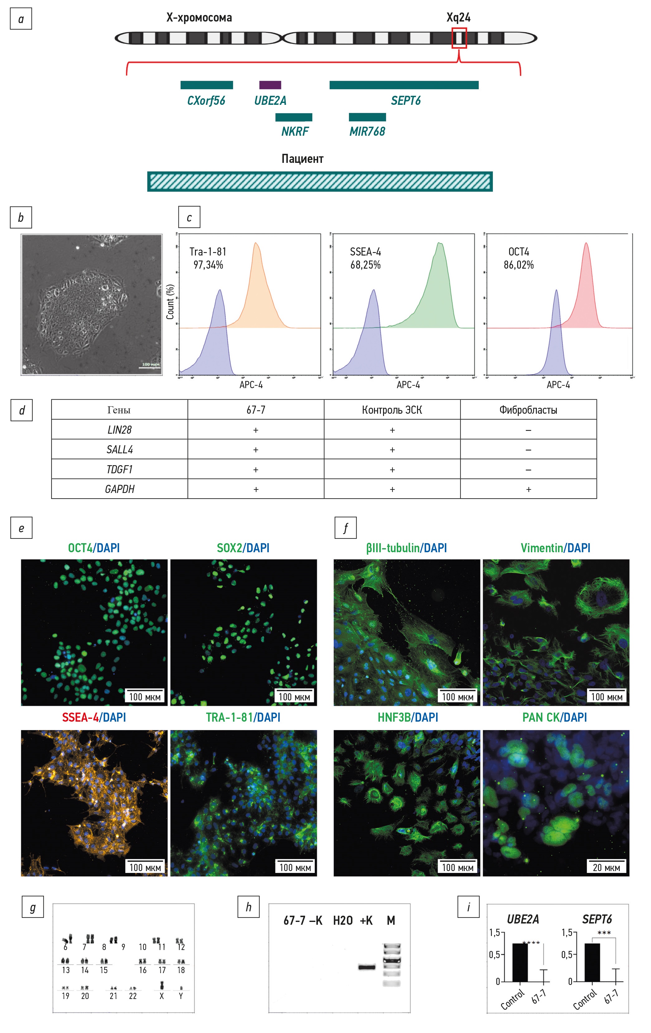 The aim of the study was to create a cell model based on iPSCs to investigate the molecular and cellular functions of the gene UBE2A in neurogenesis.