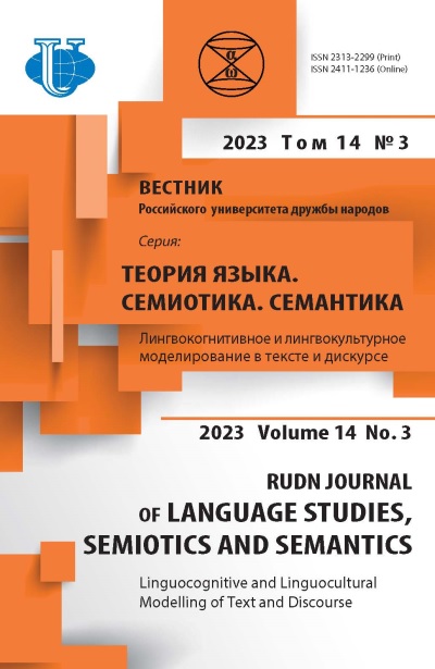 - Выпуск: Том 14, № 3 (2023): ЛИНГВОКОГНИТИВНОЕ И ЛИНГВОКУЛЬТУРНОЕ МОДЕЛИРОВАНИЕ В ТЕКСТЕ И ДИСКУРСЕ