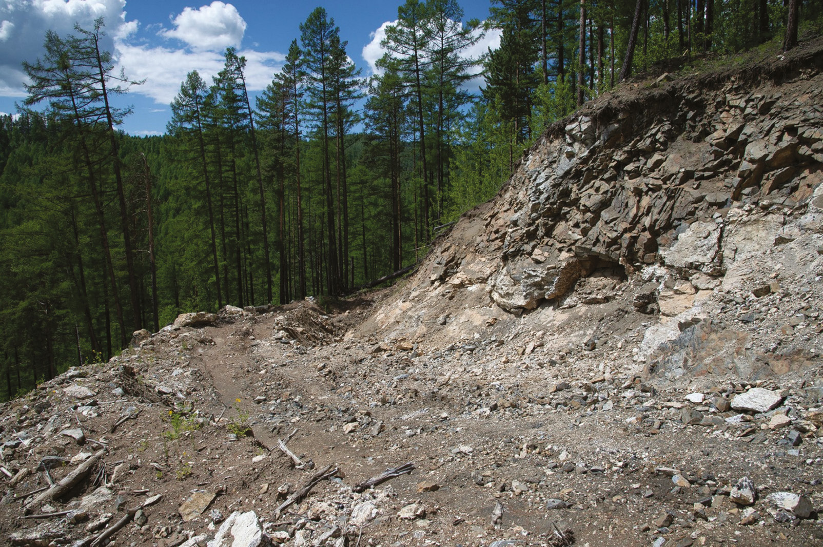 Рис. 4. Жила Крутая после расчистки. Поле зрения ~16 × 8 м. Фото Е.Е. Новосёловой, лето 2021 г.