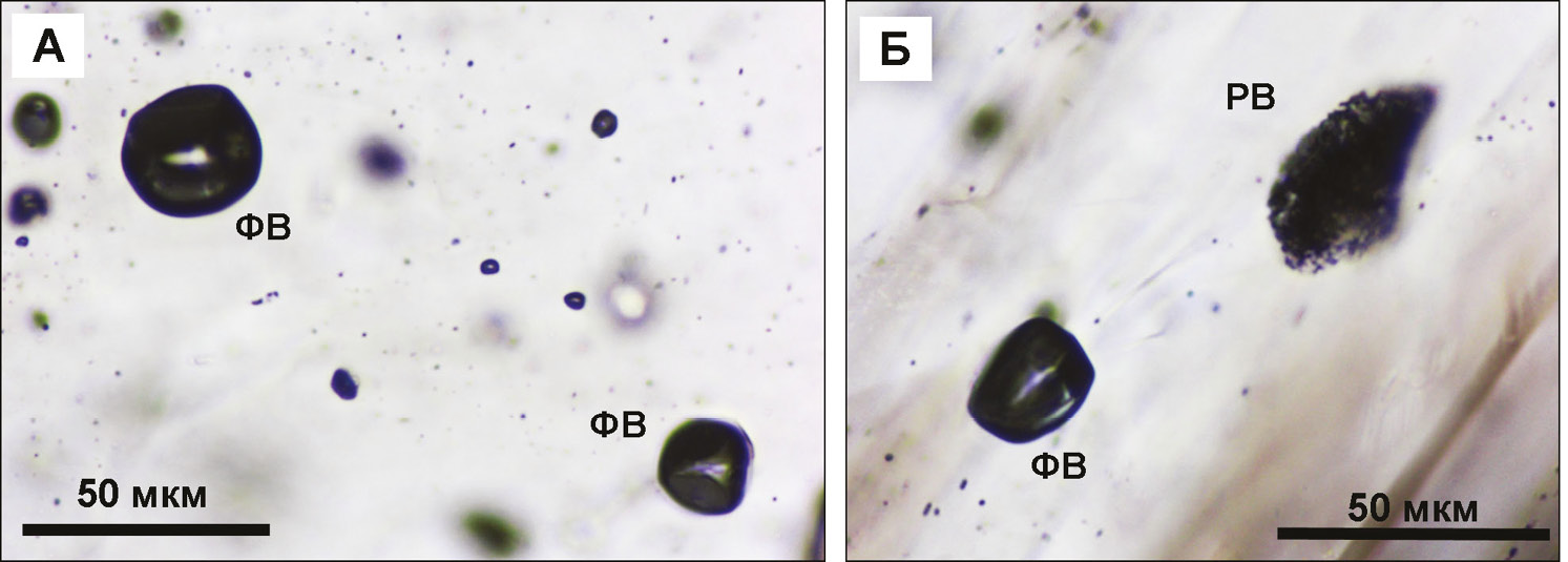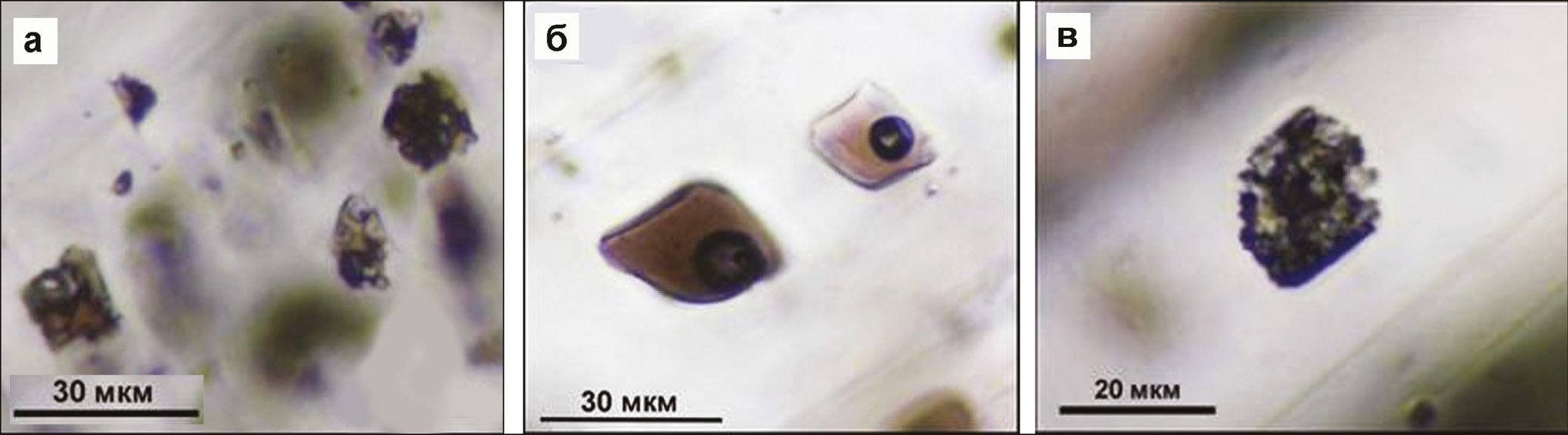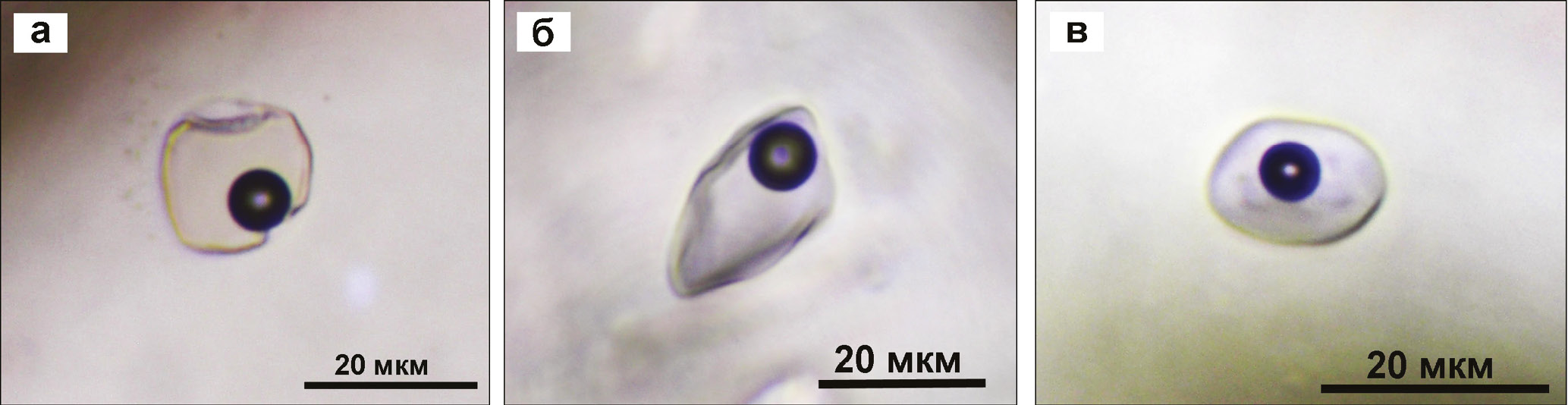 Для определения состава расплава анализировались гомогенные стекла, образовавшиеся при полном переплавлении (и последующей закалке) силикатного содержимого первичных расплавных включений во вкрапленниках в ходе термометрических экспериментов в микротермокамере. После гомогенизации силикатного содержимого и закалки включения могут состоять полностью из гомогенного стекла или содержать газовый пузырек.