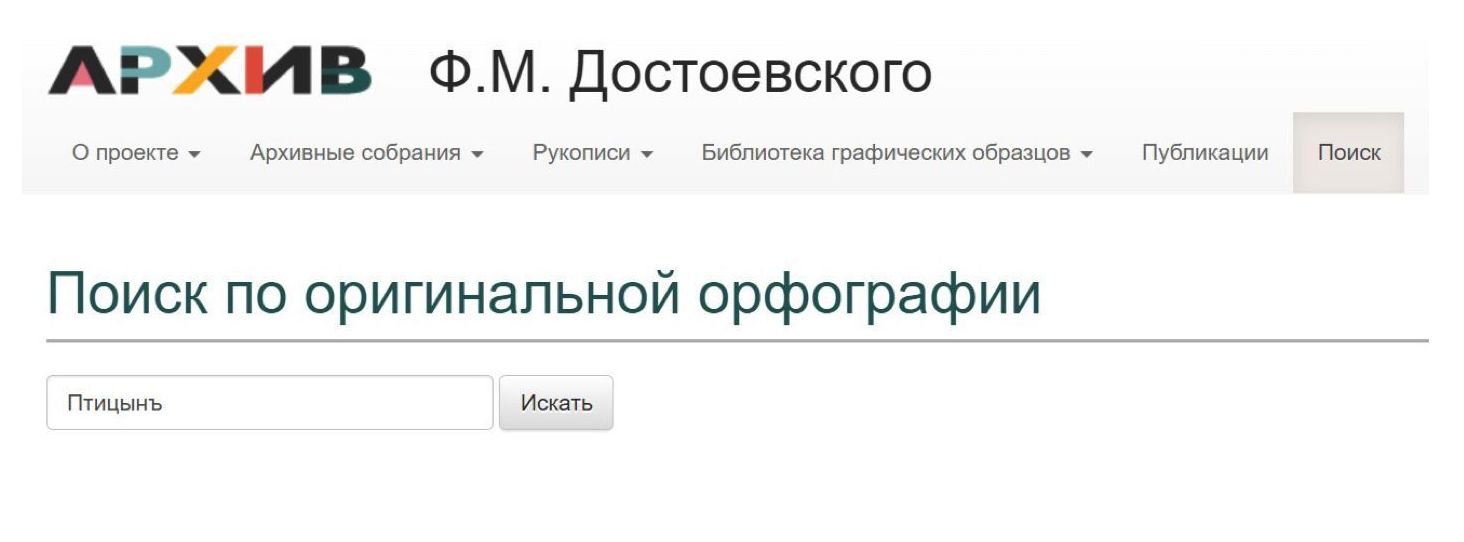 Fig. 10. The word “Птицынъ” in the database “F. M. Dostoevsky’s Digital Archive”