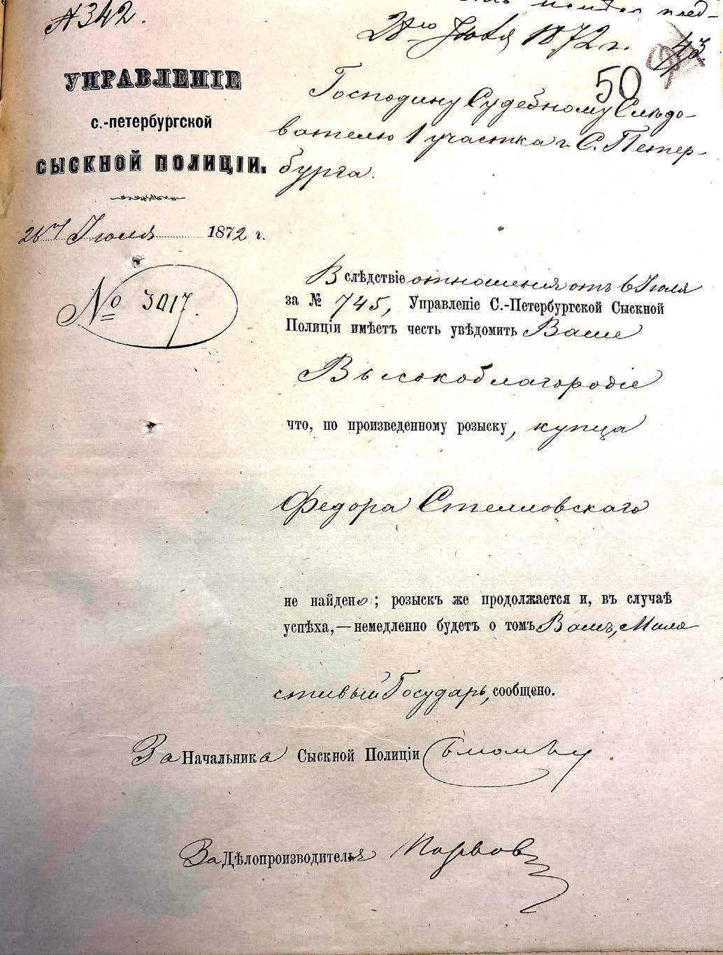 4. Fig. 3. Conclusion from the St. Petersburg Detective Police Department that it was not possible to find Stellovsky