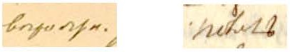 Вторая буква в анализируемом слове могла быть и «а», и «о», а конечная, как «й», так «ъ» или «ь». Именно поэтому вариантов прочтения несколько: не только фамилия «Полевая» или «Палевая», но и имя — «Павелъ». Кроме того, четвертая и пятая буквы могли быть также «я» и «к»: сравни написание этих букв в зависимости от беглости почерка в словах «вѣроЯтн<ому>» и «поляКъ» (см. Илл. 5).