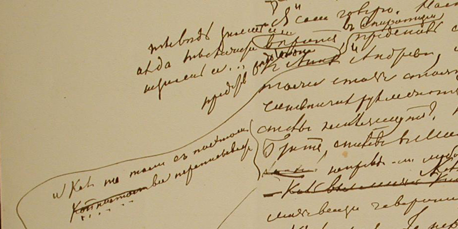 - Часть набросков на полях, относящихся к четвертой главе третьей части романа: