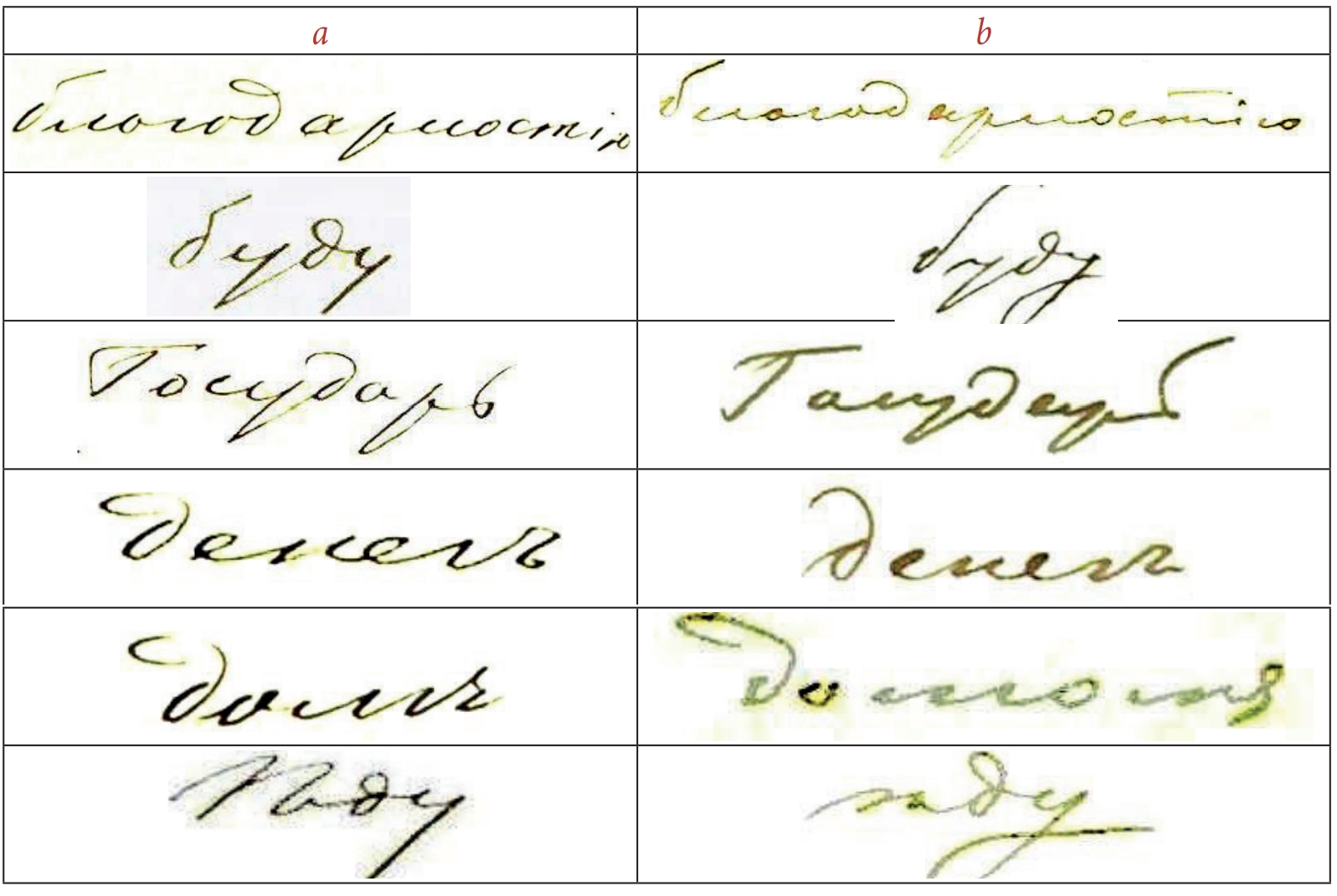 Можно попутно обратить внимание, что и у «сына», и у «отца» отрыв пера от бумаги в одноименных словах происходил в одних и тех же местах, ср.: «б-лагод-арно-сті-ю», «б-уду», «Г-осуд-арь», «д-енегъ»;