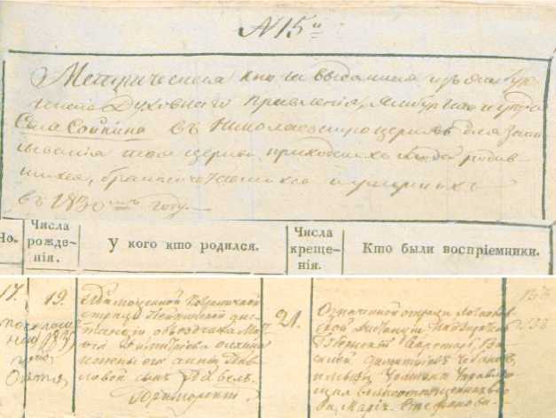 Илл. 1. Запись из метрической книги за 1830 г. (ЦГИА СПб. Ф. 19. Оп. 125. Д. 784)