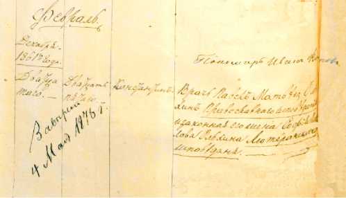 Заметим, что в научной и биографической литературе при указании даты рождения К. П. Ольхина имеются расхождения11. Однако точно установить ее помогают обнаруженные нами данные метрической книги Мариинской церкви г. Павловска. В ней записано, что сын Ольхина родился 20 декабря 1861 г. (см. Илл. 3). На момент венчания Достоевских ему было 5 лет.