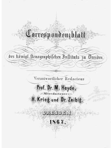 Один из важнейших центров немецкой стенографии XIX в. находился в Дрездене. Российское Министерство юстиции, осознавая необходимость иметь в судах опытных скорописцев, вошло в сношение с Дрезденским стенографическим обществом. В Германии искусство стенографии, почти неизвестное в России, было возведено «на степень науки» [Ершов: 32–33]. Пребывая в 1867 г. в этом городе, супруги Достоевские познакомились с членом Дрезденского стенографического института (с 1855 г.), заведующим его библиотекой профессором Юлиусом Вольдемаром Цайбигом (степень профессора стенографии он получил в 1866 г.). Как вспоминала Анна Григорьевна, П. М. Ольхин перед их поездкой за границу дал ей «письмо к профессору Zeibig’у (Цейбигу), вице-председателю кружка последователей Габельсбергера <…>. Ольхин уверял, что Цейбиг отличный человек и что он может быть полезен при осмотре галерей и проч.» [Достоевская, 2015: 209].