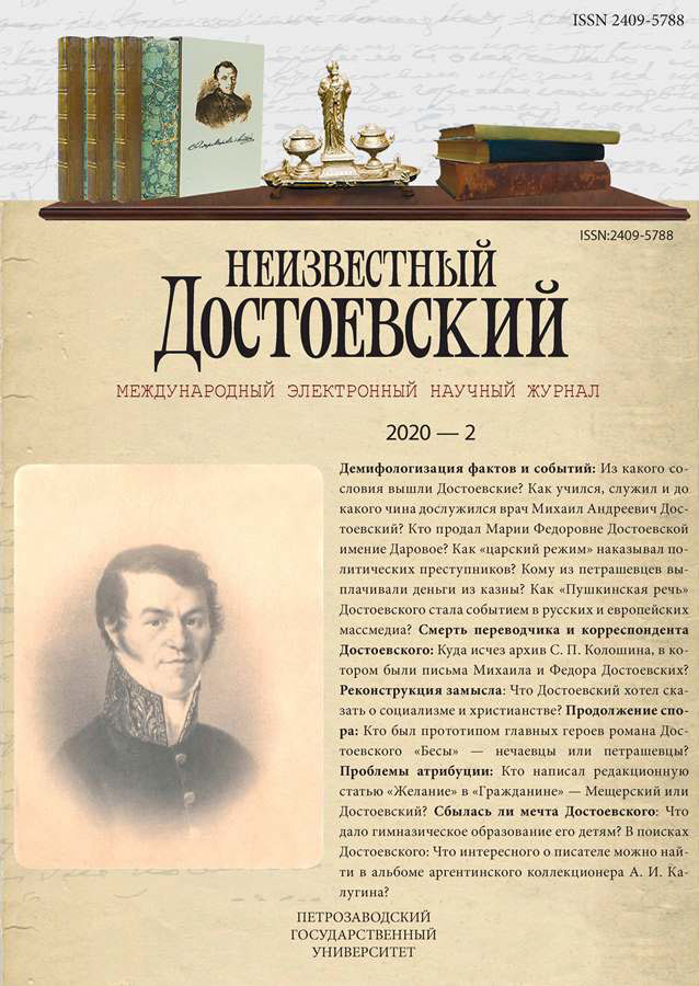 «Социализм и Христианство»: проблемы атрибуции и публикации замысла Достоевского