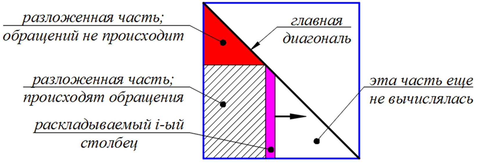 Рис. 1. Порядок обращения к элементам матрицы [L] в процессе ее разложения