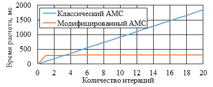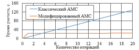 Таким образом, эффективность применения модифицированного АМС по сравнению с классическим АМС проявляется при решении задачи за четыре и более итераций (рис. 9).