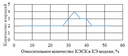 Рис. 10. Количество итераций решения контактной задачи, при котором упорядочение модифицированным АМС выгоднее упорядочения классическим АМС в зависимости от относительного количества КЭСК в модели