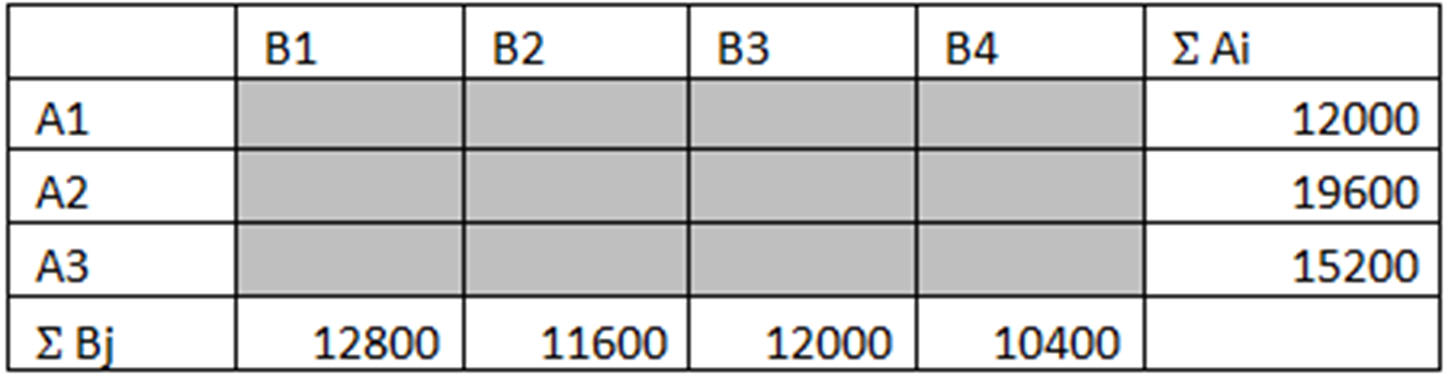 Пусть необходимо распределить годовой план на периодов равномерно. Необходимо перераспределить товар, который предназначен для потребления в недоступные периоды, на доступные периоды, то есть нужно сделать так, чтобы суммарный объем запросов за все периоды каждого отдельного потребителя был равен годовому объему запросов этого потребителя; аналогичное условие и для поставщиков. При этом должно быть выполнено условие баланса: годовой запас товара у поставщиков должен быть равен общему годовому объему запросов.