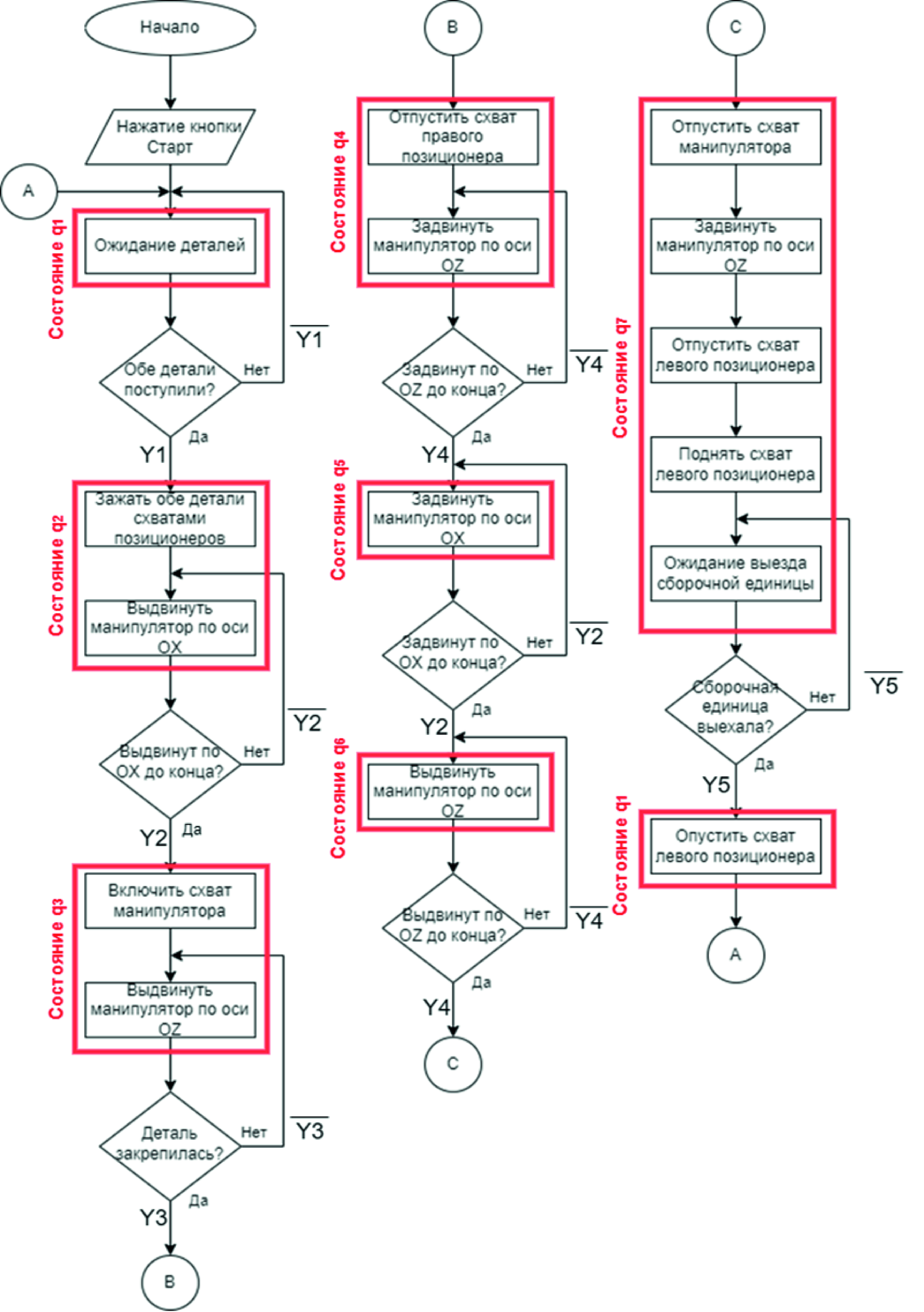 Рис. 3. Алгоритм управления процессом сборки с разграничением состояний конечного автомата