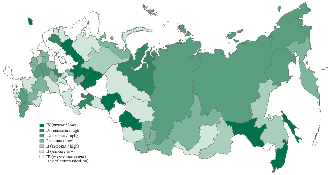 Исследования также показали, что в России сложились разные группы регио нов – полюсов экономического развития; одни регионы позитивно влияют на рынки труда соседей, другие ‒ гиперлокализованы по занятости и «вытягивают» рабочую силу из соседних регионов [15].
