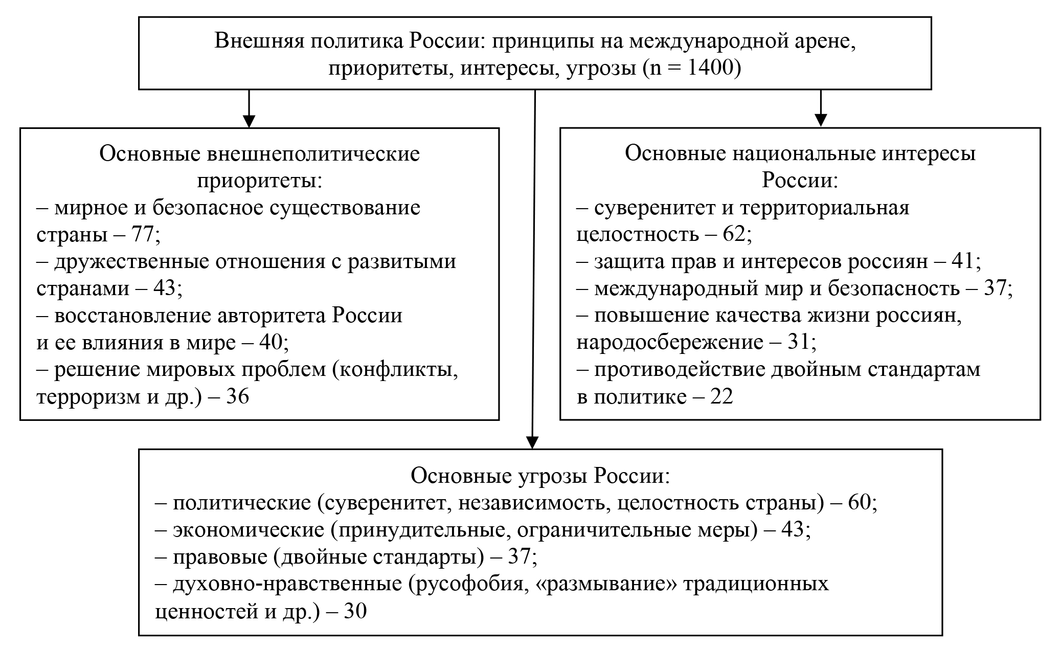 Рис. 3. Внешняя политика России: принципы, приоритеты, интересы, угрозы, июнь 2024 г.