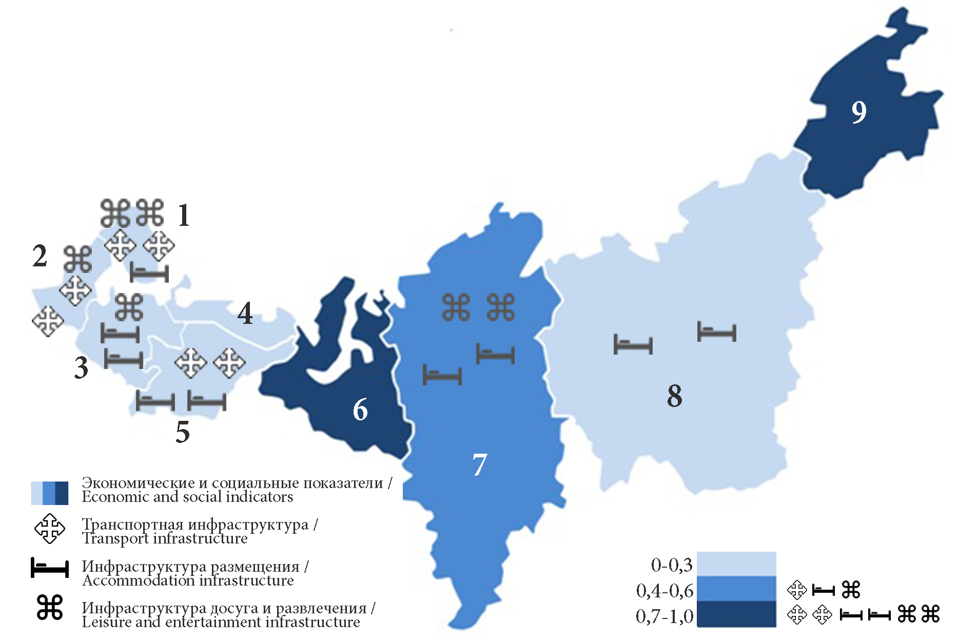 Согласно гипотезе исследования, при прочих равных условиях более высокие возможности для туризма имеют жители тех регионов, где:
