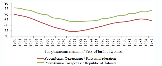 У женщин 1980 и 1981 гг. р. среднее число первых рождений в РТ совпадало с российским и было ниже, чем почти во всех регионах ПФО. Удельный вес вторых рождений среди матерей, родивших первого, по региону в поколении 1985 г. р. (73,6 %) существенно выше наибольшей (после повышения) в целом по России (1983 г. р. – 65,8 %) и самая высокая среди регионов ПФО (свыше 70,0 % она еще только в республиках Башкортостан (1983 г. р. – 72,4 %), Марий Эл (1983 г. р. – 72,2 %) и Чувашской (1984 г. р. – 72,1 %), в Оренбургской области (1985 г. р. – 71,7 %) и Пермском крае (1984 г. р. – 70,3 %).
