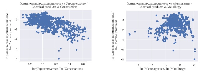 Fig. 8. Scatter plots of “Chemical productsˮ with “Constructionˮ and “Metallurgyˮ