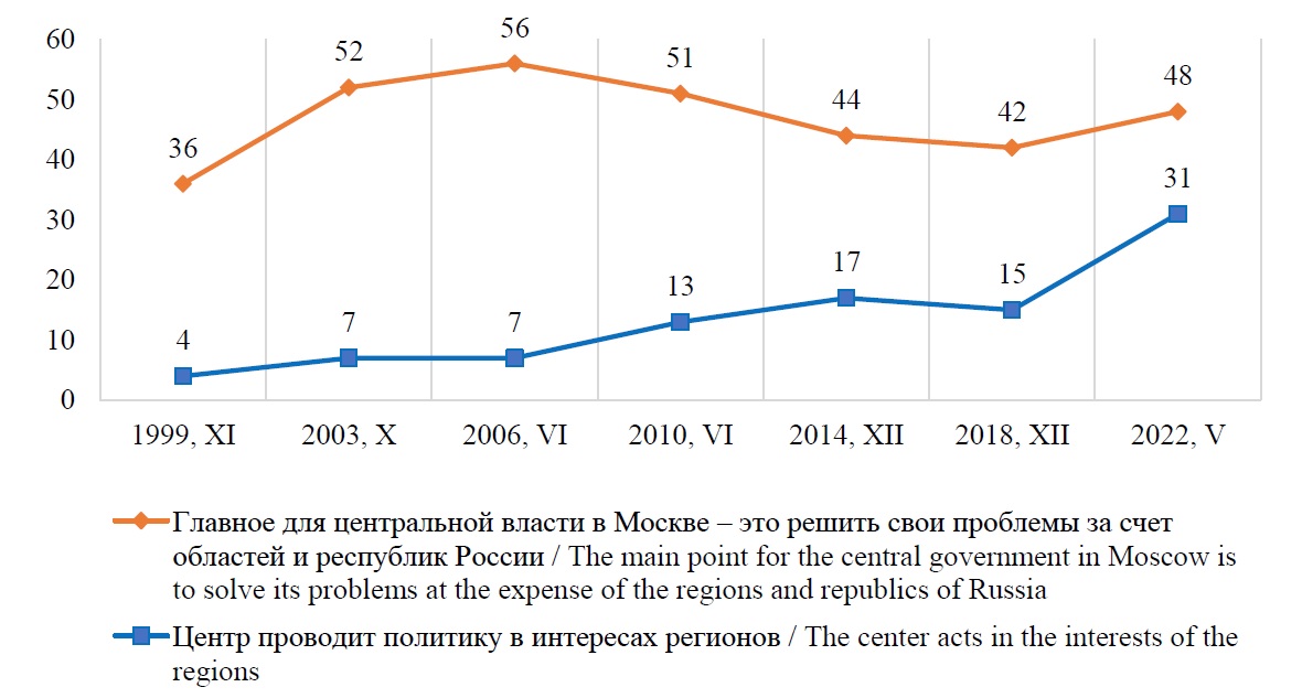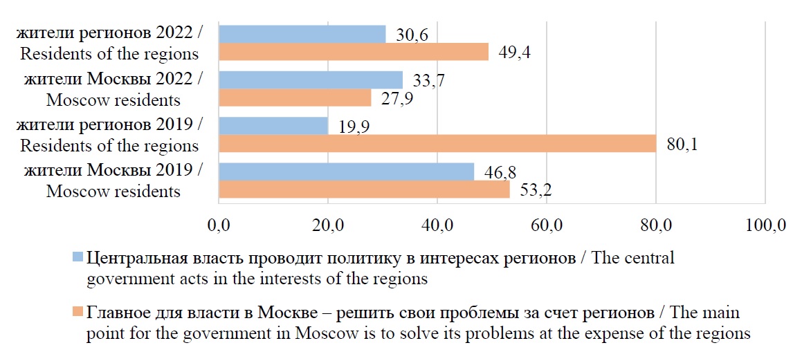 Учитывая высокий разрыв между субъектами Федерации, широко освещенный в отечественной литературе [20; 21], логично предположить отражение в общественном сознании имеющегося осознания жителями регионов недостаточного внимания к их проблемам со стороны федеральной власти (рис. 3).