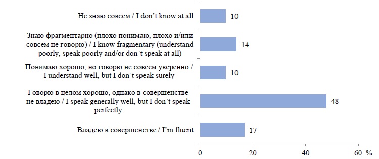 Рис. 1. Распределение ответов на вопрос о владении татарским языком среди респондентов, %9