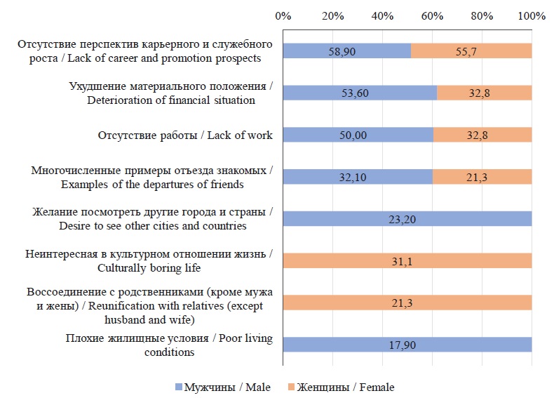 Рис. 1. Причины возможной миграции мужчин и женщин, %