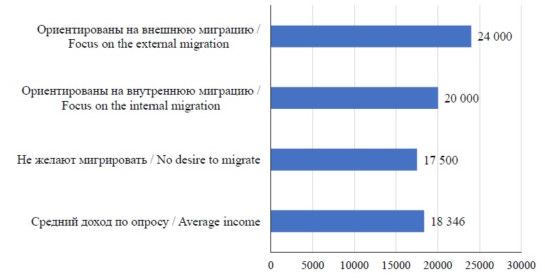 Рис. 2. Среднедушевой доход респондентов в зависимости от миграционной стратегии, руб.