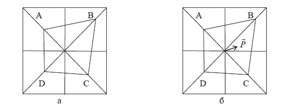 В статье Н. П. Макаркина, О. Б. Томилина, А. В. Бритова, исходя из геометрических свойств четырехугольника, установлена новая характеристика профиля организационной культуры в методике OСAI – общекультурный вектор , который представляет собой синергетический результат взаимодействия базовых (клановой, адхократической, рыночной и иерархической) организационных культур [36]. Найденные усредненные количественные вклады a, b, c, d базовых культур, выражающие их процентные вклады, можно представить векторами ā, ̄b, ̄c, ̄d. Интегральной характеристикой состояния организационной культуры в этом случае будет общекультурный вектор . Направление и длина вектора характеризуют качественно (направление) и количественно (длина) доминанту базовой культуры в состоянии организационной культуры. Доминирующее влияние базовых организационных культур можно установить по положению вектора (рис. 1). «Длина вектора может служить мерой лабильности (неустойчивости) отклика деятельности работников организации на влияние внешней среды» [36], причем неустойчивость как совокупный результат эмоциональной, интеллектуальной, психологической лабильности является прямой характеристикой адаптационного потенциала организационной культуры.