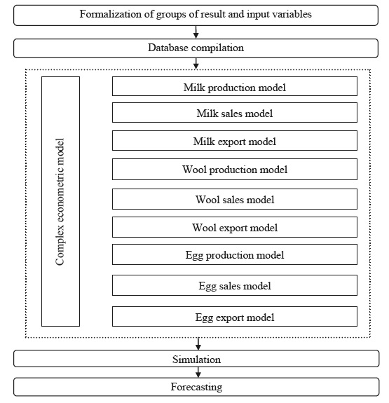 Built on the basis of the proposed algorithm, dynamic econometric models of production, sale and export of the main types of livestock products in the Stavropol region are distinguished by a high level of statistical quality characteristics. This allows you to successfully use them to predict the presented indicators in the short term.
