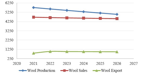 The forecasts of wool production, wool sales and wool export models are presented in Figure 3.