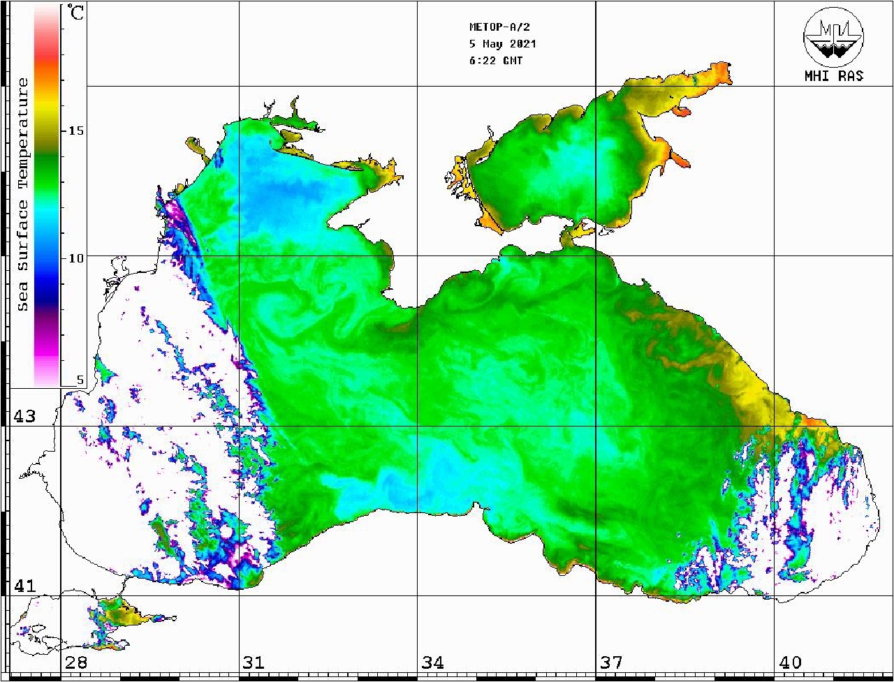 Fig. 2. Sea surface temperature on 5 May 2021 from METOP-А/2 data