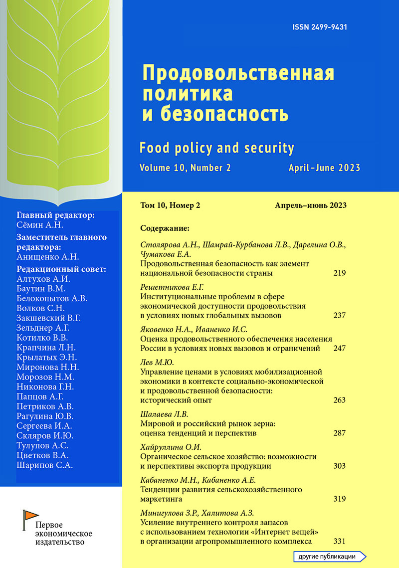 Price management in a mobilization economy in the context of socio-economic and food security: historical experience