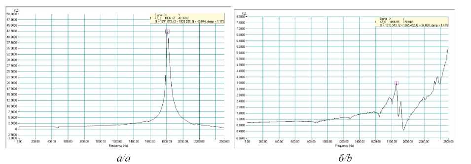 Первая резонансная частота, Гц The first resonant frequency, Hz | 1412,7 | 1856,6 |
