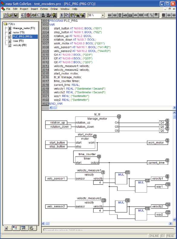 Fig. 5. PLC–PRG main programme window in CODESYS development environment in CFC programming language