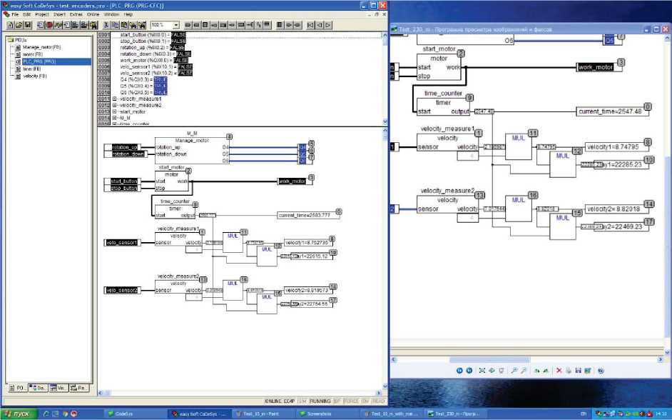 На рис. 4 показана вычислительная система стенда в составе ПЛК и персонального компьютера. Контроллер способен работать на всех языках программирования стандарта МЭК (LD, IL, ST, SFC, FBD, CFC). Для программирования используется среда CODESYS. У данного контроллера на борту имеются дискретные и аналоговые входы 0–10 В, релейно-контактные выходы, интерфейс подключения по сети Ethernet и CAN open. Кроме того, у контроллера есть дисплей отображения его состояния и кнопки управления, что делает данный ПЛК весьма удобным в эксплуатации [18].