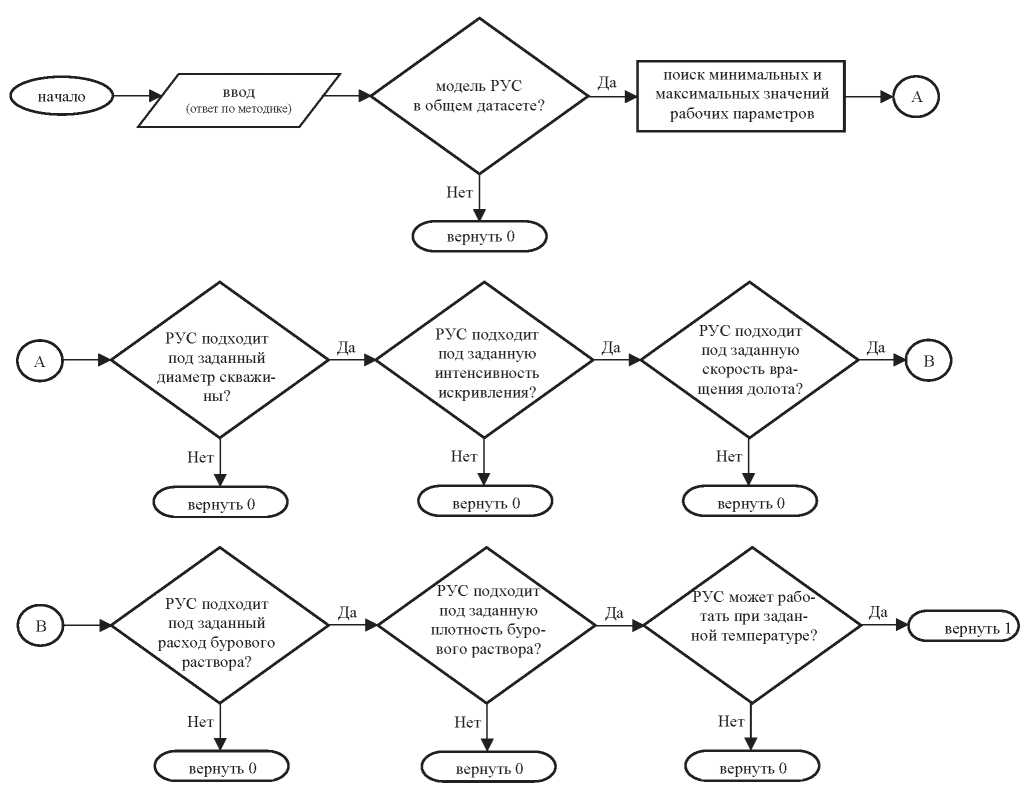 Направление исследования – повышение эффективности бурения скважин. Предмет исследования – оптимизация процесса подбора оборудования с применением современных технологий для совершенствования процесса строительства скважин. Задачи исследования: выполнить построение методик подбора РУС на примере датасетов различной информативности с использованием метода машинного обучения RFC; проверить качество составленных методик по показателям точности получаемых результатов и скорости выполнения поставленной задачи; выполнить сравнение используемых подходов к обучению модели между собой и сделать соответствующие выводы.