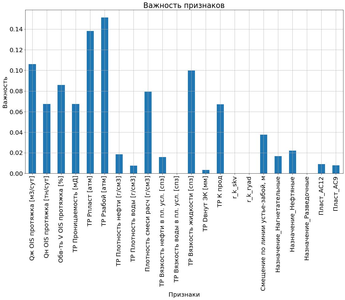 Анализируя рис. 2, можно сделать вывод о том, что наиболее важными признаками для обучения являются текущее забойное давление, текущее пластовое давление, дебит по жидкости, а также вязкость жидкости, остальные признаки имеют менее важную роль. Менее важными признаками являются: вязкость воды в пластовых условиях, расстояние между скважинами, а также внутренний диаметр эксплуатационной колонны. В будущем данные признаки будут удалены из модели машинного обучения для увеличения производительности модели.