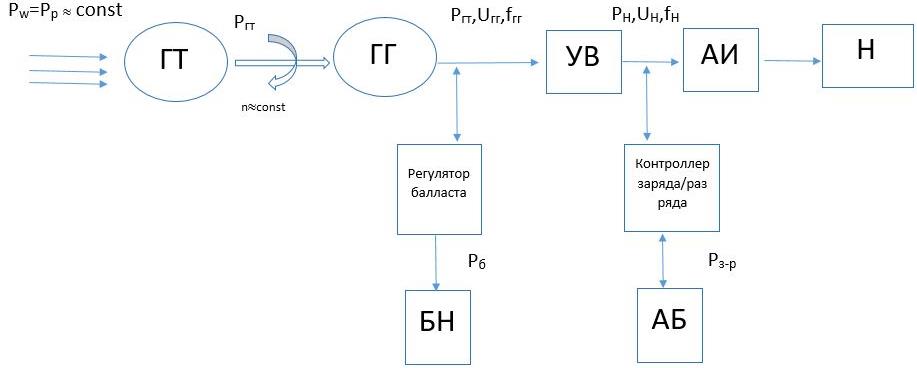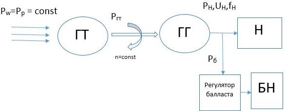 Рис. 5. Структурная схема микро-ГЭС автобалластного типа с инвертором