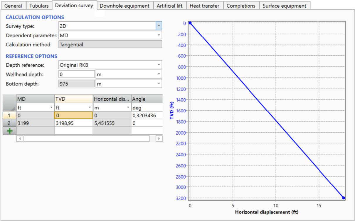 Также существует возможность моделирования искомых параметров для различных конструкционных параметров (диаметр НКТ) или технологических режимов (дебит, забойное или устьевое давления). Для выполнения моделирования помимо уже заданных параметров требуется задать два из трёх компонентов: