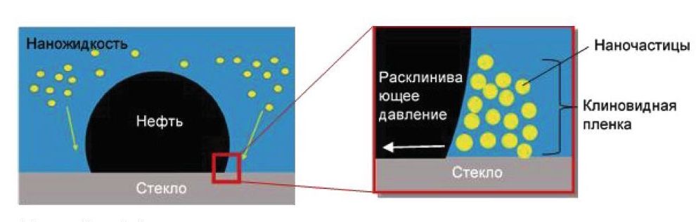 Наножидкости позволяют увеличить извлечение нефти из пор и каналов горных пород с помощью нескольких механизмов. К основным механизмам относятся: снижение межфазного натяжения, увеличение вязкости, изменение расклинивающего давления и изменение смачиваемости, образование эмульсии и ограничение потока могут влиять на добычу нефти.