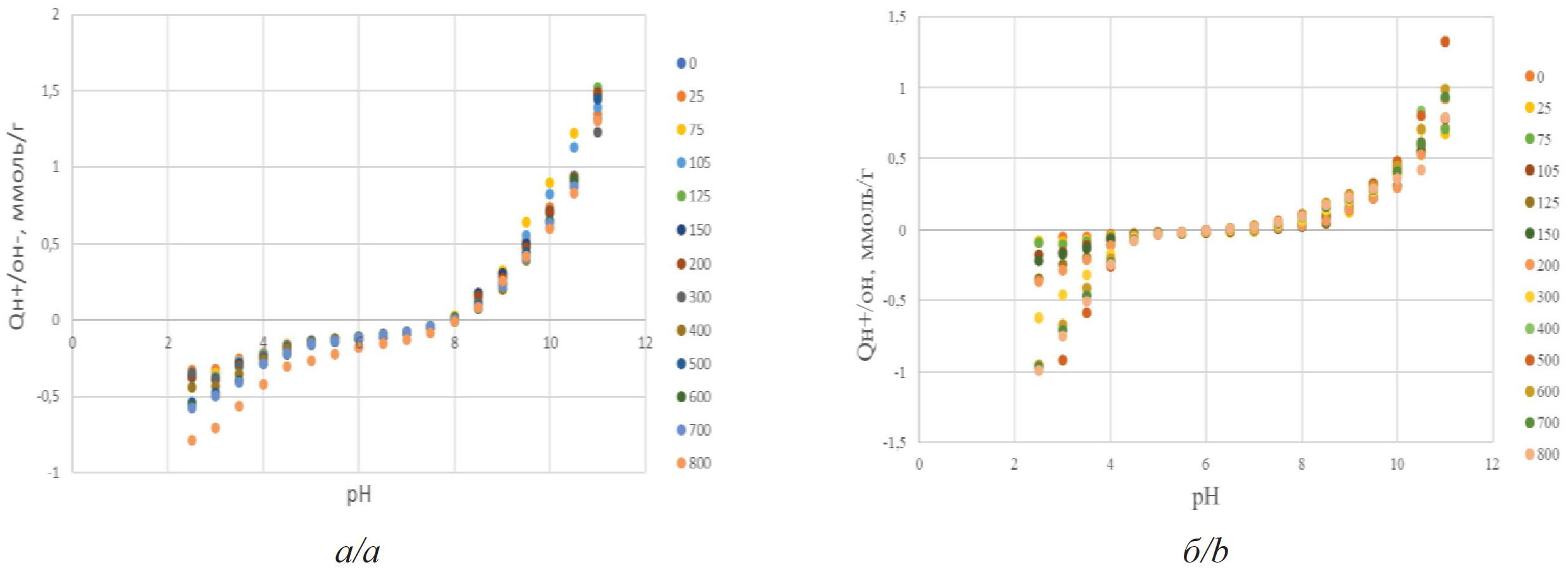 Методика. Потенциометрическое титрование, определение точки нулевого заряда проводилось с помощью построение кривых потенциометрического титрования. Использовано программное обеспечение Microsoft Excel, SigmaPlot, Statistica.