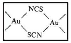 Тиоцианатные и изотиоцианатные через N-мостиковые – ν(AuN) / Thiocyanate and isothiocyanate through N-bridge – ν(AuN) | 2163 ν(CN) 775 ν(CS)