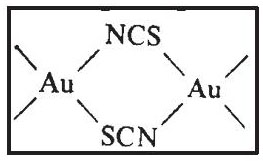 Цис и транс NCS или SCN – плоскостные и межплоскостные связи Cis and trans NCS or SCN – planar and interplanar connections | Псевдогалогенидные комплексы – K[Au(-SCN)4] Pseudo-halide complexes – K[Au(-SCN)4] | 2130, 1088, 700, 458, 413 |