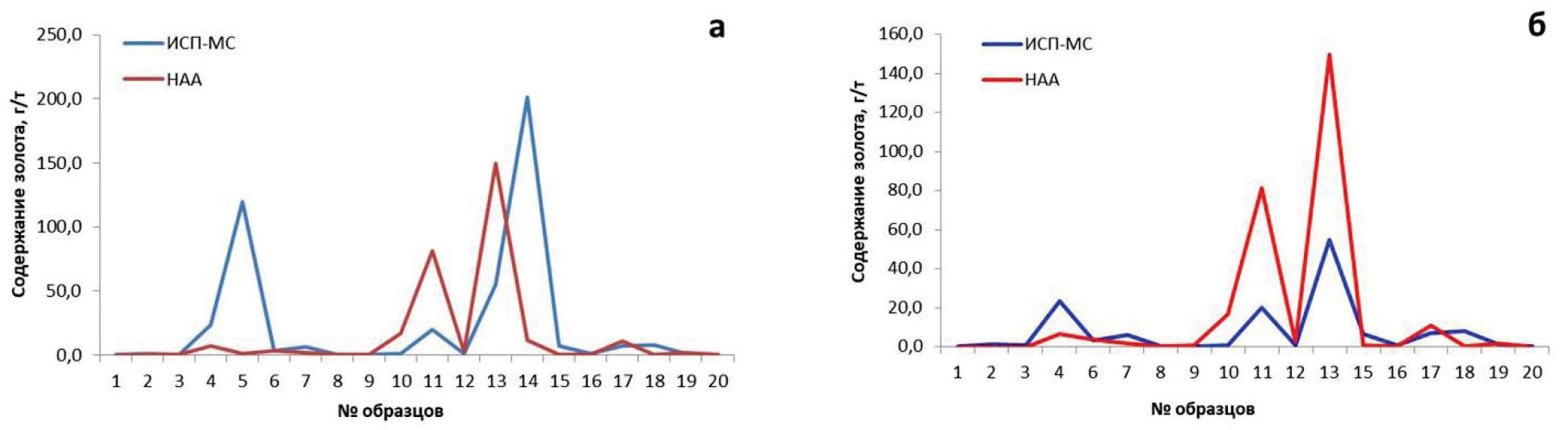 Химические анализы проводились с использованием метода ИСП-МС в Аналитическом центре «Плазма», г. Томск. Содержание на 62 элемента в черных сланцах оценивали без предварительного озоления методом открытого кислотного разложения (HClO4+HNO3+HF). Авторы отталкивались от утверждения, что корреляция между результатами ИСП-МС и ИНАА является удовлетворительной [49].