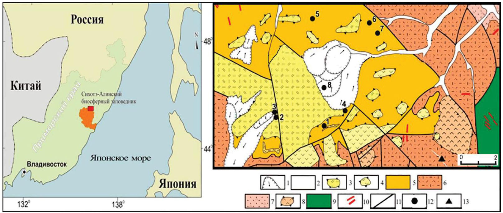 - Vetrennikov V.V. Geological structure of the Sikhote-Alin state reserve and central Sikhote-Alin. Vladivostok, FE Publ., 1976. 183 p. (In Russ.)