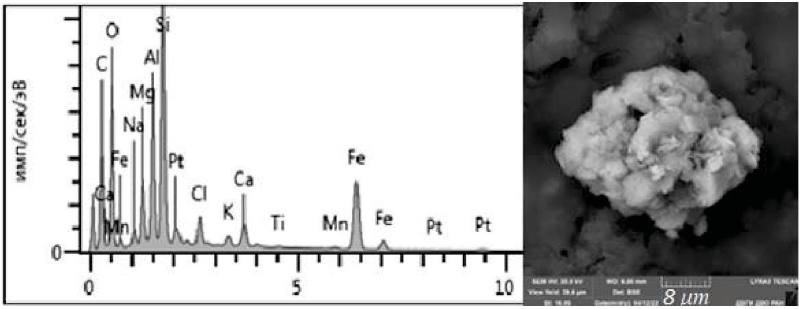 Рис. 6. Минеральные фазы смешанного состава с преобладанием Si в головном мозге изюбря