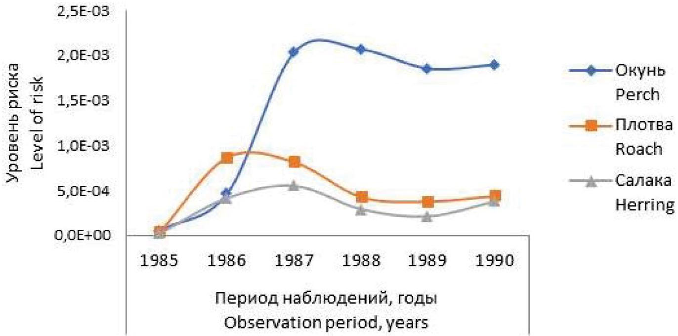 5. Fig. 4. Change in radiation risks for the fish fauna of the Koporskaya Bay after the Chernobyl accident