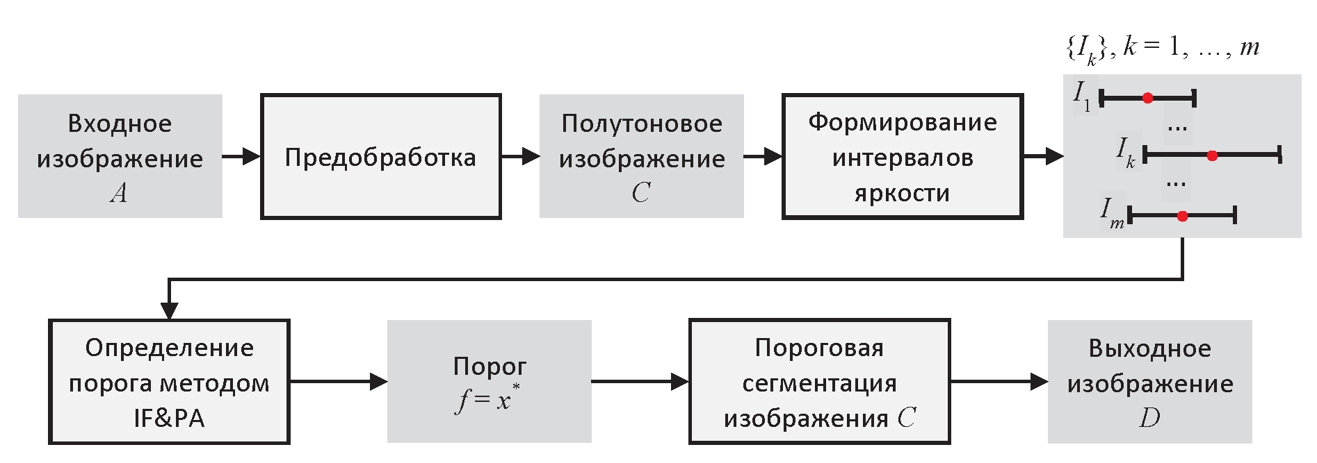 Процесс выполнения сегментации изображения с определением порога методом IF&PA представлен на рис. 2.