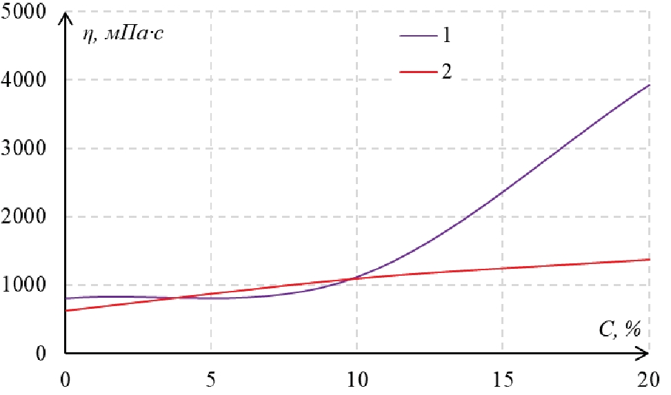 Динамическая вязкость (η) ВУС измерялась при помощи ротационного вискозиметра [27].