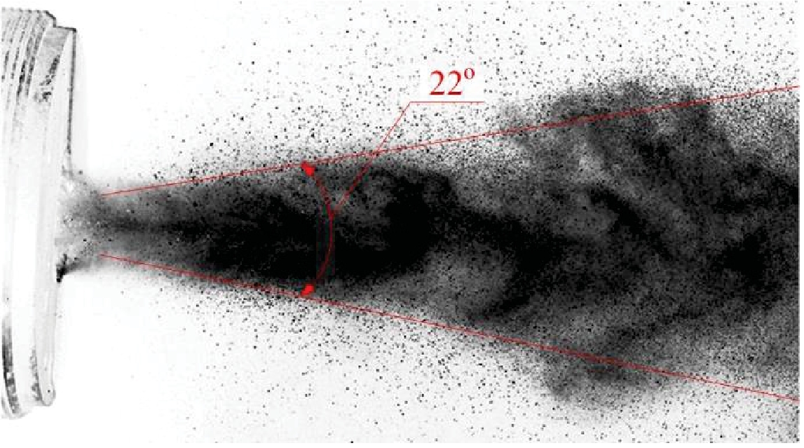 В зависимости от типа форсунки после истечения из сопла ВУС перемешивается с распыляющим агентом или уже представляет смесь топлива и распыляющего агента. В некоторых случаях вблизи сопла возможна практически однофазная струя топлива. Как правило, после истечения ВУС из соплового канала форсунки происходит ее разрушение на крупные фрагменты, как правило, за счет воздействия распыляющего агента, сил сопротивления окружающей среды, центробежной силы (капли ВУС при движении хаотично вращаются). Далее в струе, преимущественно за счет воздействия последних двух сил, происходит разрушение капель ВУС на мелкие. Проведенные нами ранее многочисленные экспериментальные исследования, например, [21–26], характеристик распыления различных ВУС и водоугольных топлив форсункой с внутренним смешением жидкости и распыляющего агента показали неплохую эффективность такого устройства распыления. Основным преимуществом является то, что дисперсный состав струи будет определяться параметрами распыления. Но при этом в струе все равно будут присутствовать крупные (характерным размером более 500 мкм) капли ВУС.